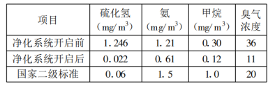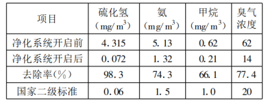 高能離子氧污水泵站臭氣凈化前后檢測數據對比: