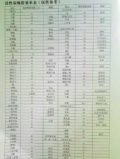 活性炭吸附有機廢氣和臭氣效率表