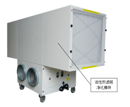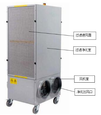 該設備采用模塊化設計、安裝,下面模塊是風機和出風口模塊,上部是過濾凈化和進風口模塊,設備還可以根據需要在進風口添加廢氣凈化模塊。
